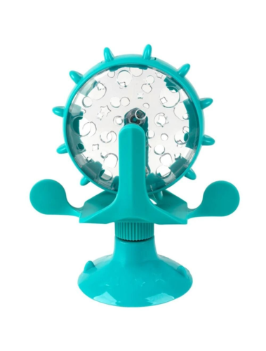 Wheel Treat Dispenser af mærket Pawise. Kan fyldes med tørkost eller godbidder. Ideel til indendørskatten, killingen og øvrige katte, der har brug for aktivering. Kan også anvendes til katte med tendens til at spise for stærkt og sluge deres foder, hvis de fodres i en almindelig foderskål.