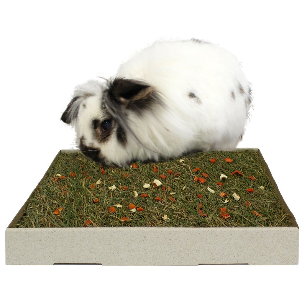 Foderanbefaling: Gives som snack - udskiftes efter behov. Tilskudsfoder til dværgkaniner og gnavere. Ingredienser: Hele planten fra de vilde blomster, urter og græsser (mælkebøtte, Lancet, tusindfryd, rødkløver, vejbred, kamille og fuglegræs) Gulerødder 0,7% Pastinak 0,4% Et reelt stykke eng til alle gnavere og dværgkaniner. Udforskning, grave og gnave som det ellers kun er muligt udendørs. En duftende urteeng med sunde og vitaminrige gulerødder og sunde pastinakker for en særlig naturlig aktivitet. Urteengen kan sættes ind i gnaverens hjem som et helt stykke. Den grønne del af planterne er rig på naturlig fibre, rødderne understøtter tandslid og den vedhængende jord giver dit kæledyr en masse ekstra vigtige mineraler. Mere naturligt bliver det ikke.