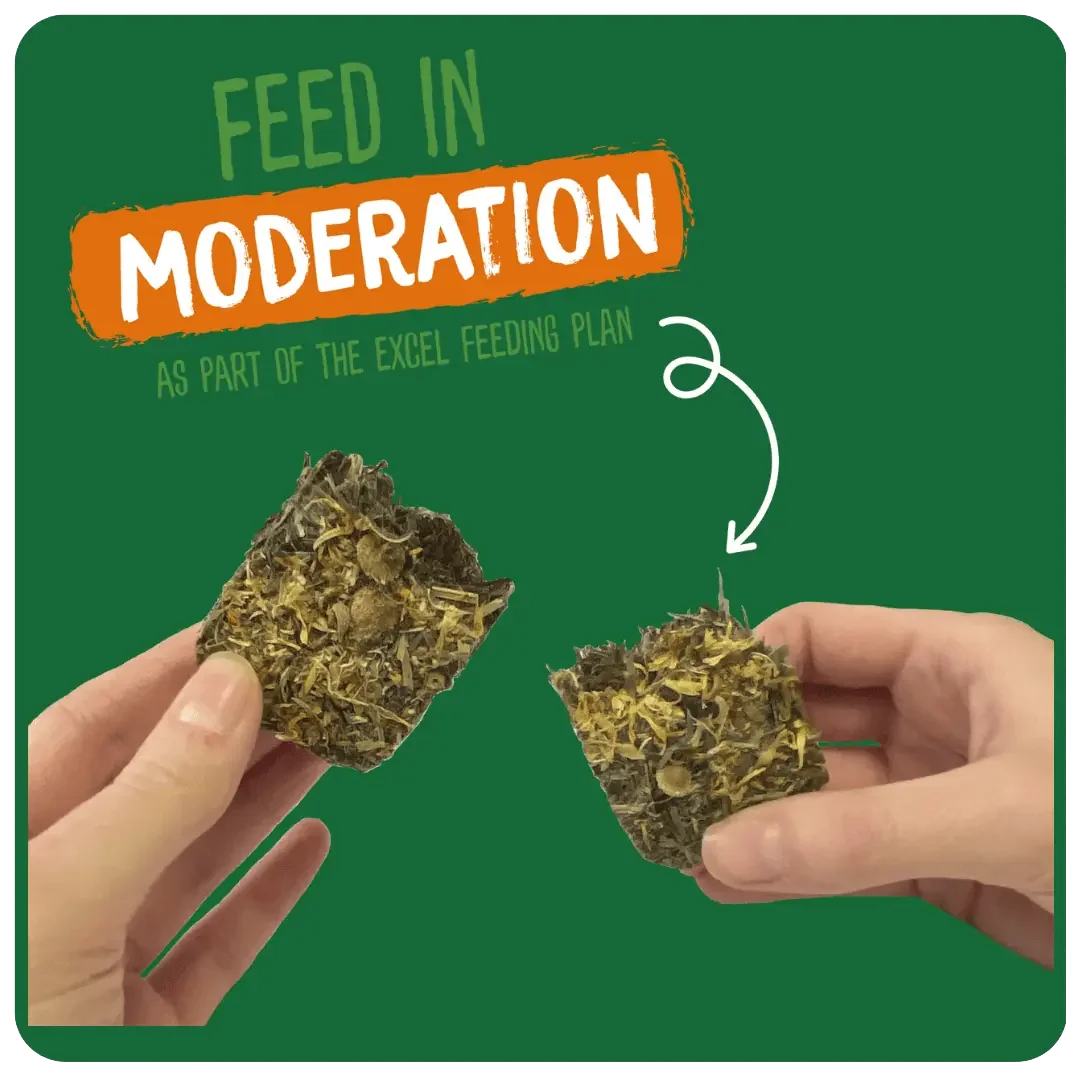 Vores Excel Forage & Feast Hay Bar med morgenfrue er perfekt til kaniner, marsvin eller chinchillaer. Toppet med lækker morgenfrue, lavet af naturlige ingredienser og ideel til håndfodring.