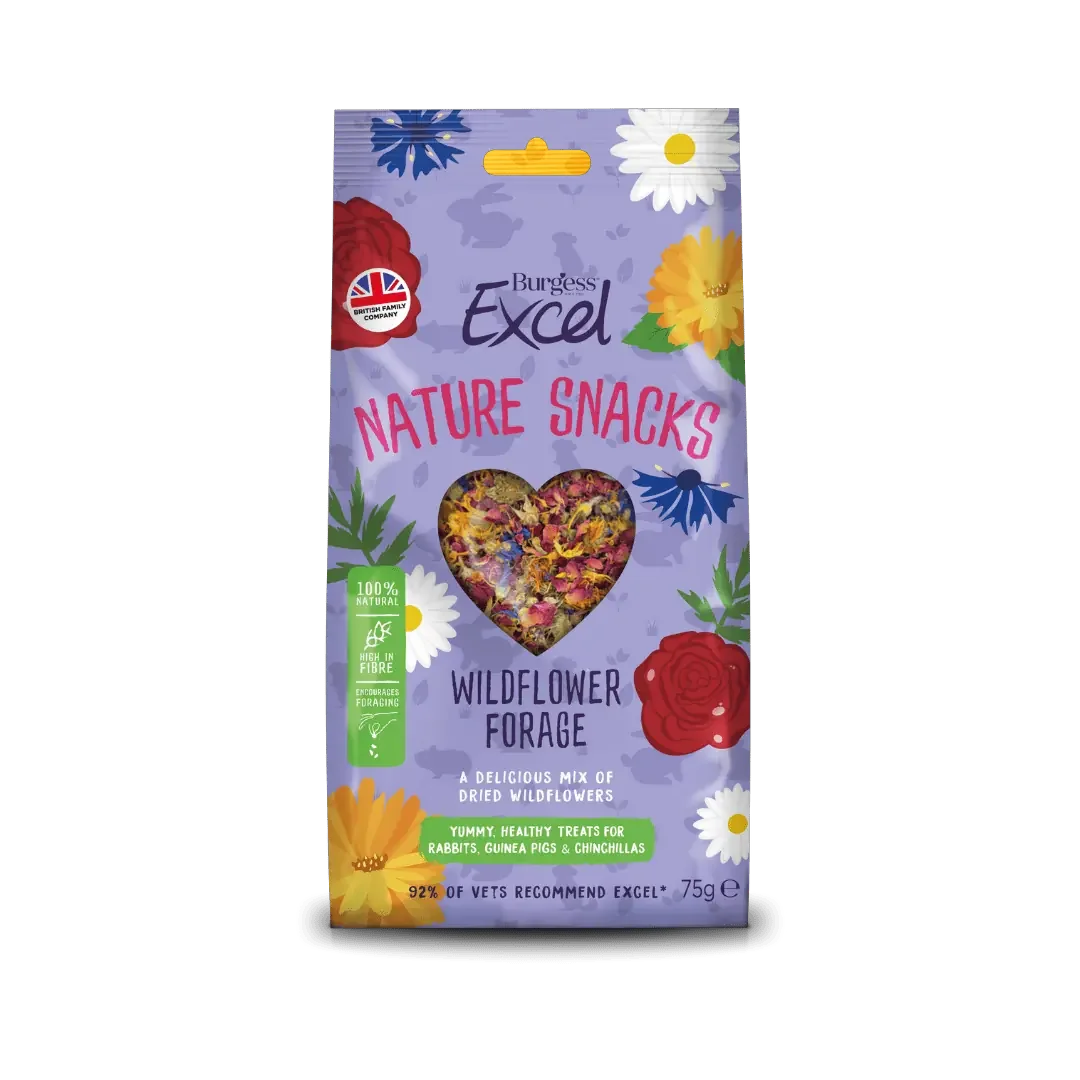 Kærligt fremstillet er vores lækre blanding af vilde blomster uimodståelig for kaniner, marsvin og chinchillaer – og naturligt sund. Lavet med en fristende blanding af rose, hibiscus, morgenfrue og kornblomst er Burgess Excel Wildflower Forage et supplerende foder til kaniner, marsvin og chinchillaer.