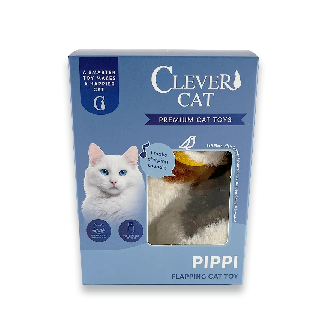 Clever Cat præsenterer et nyt legetøj – “PIPPI”, et interaktivt legetøj, der opmuntrer kattens naturlige jagtinstinkter. Det er så realistisk, at det endda kan lave lyde, der efterligner en rigtig fugl.