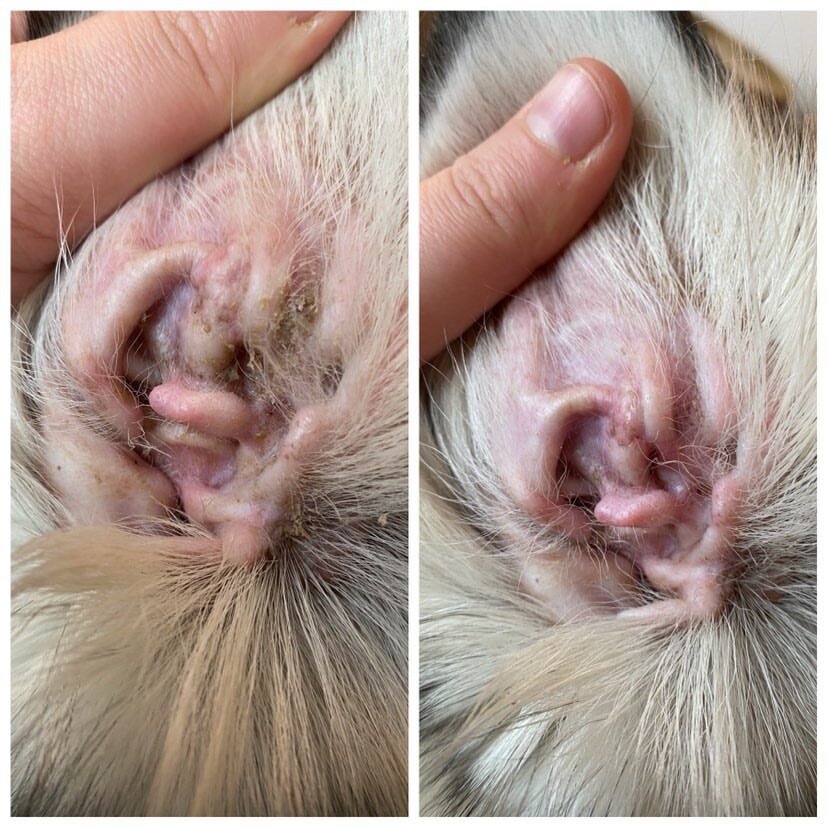 - Væd en vatrondel med B&B ørepleje og rens hele det ydre øre.