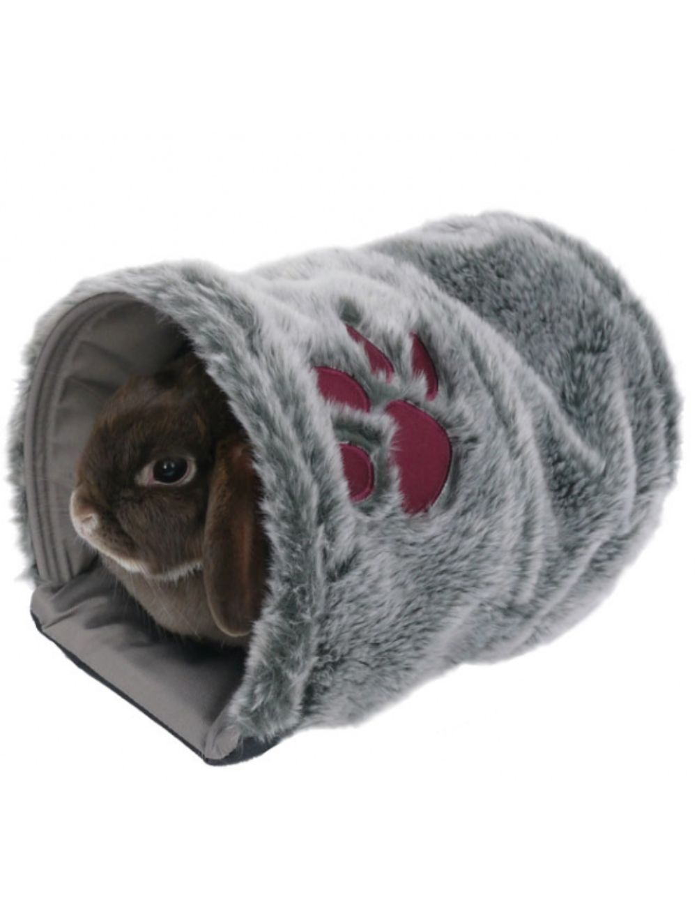 En hyggelig sovetunnel. Ideel til kaniner, marsvin eller fritter. Vendbar (blød plys eller polybomuld) Kan maskinvaskes ved 30°C. 28 cm lang x 20 cm bred.